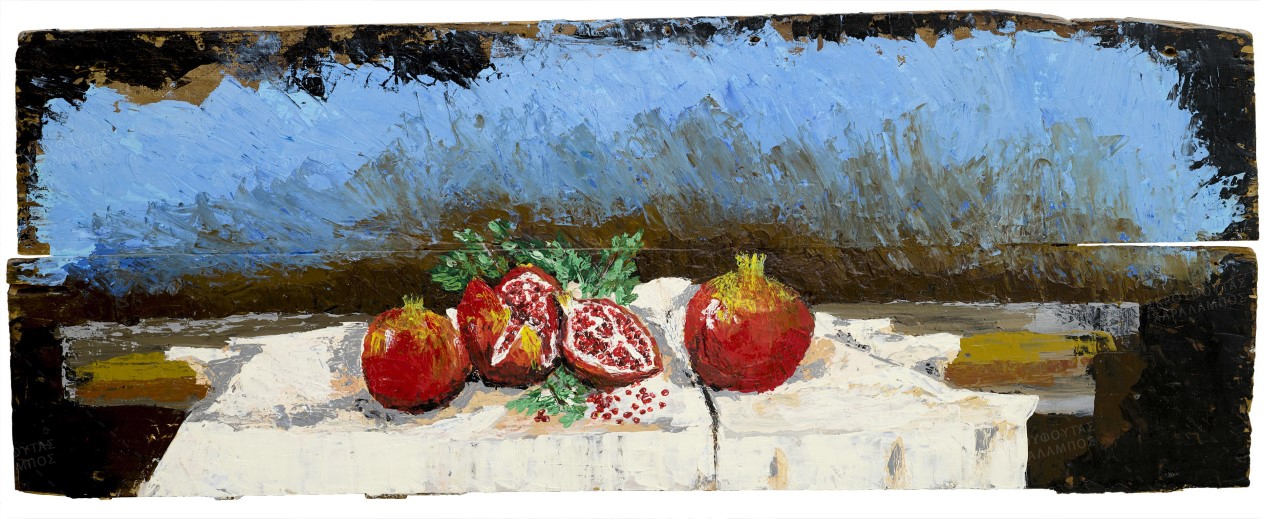 Ακρυλικό σε ξύλο με σπάτουλα.
