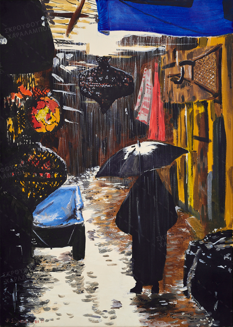 Φαίνεται σπάνιο να συναντάς στη ζέστη του ανατολίτικου παζαριού, την υγρασία της μπόρας. Έκεί που σε συνεπαίρνουν τα αρώματα και οι έντονοι χρωματισμοί, να σε αγκαλιάζει η υγρασία της βροχής και το παιχνίδισμα από το φως πάνω στις υγρές επιφάνειες. Το Μαρρακές κάθε στιγμή είναι μαγικό.